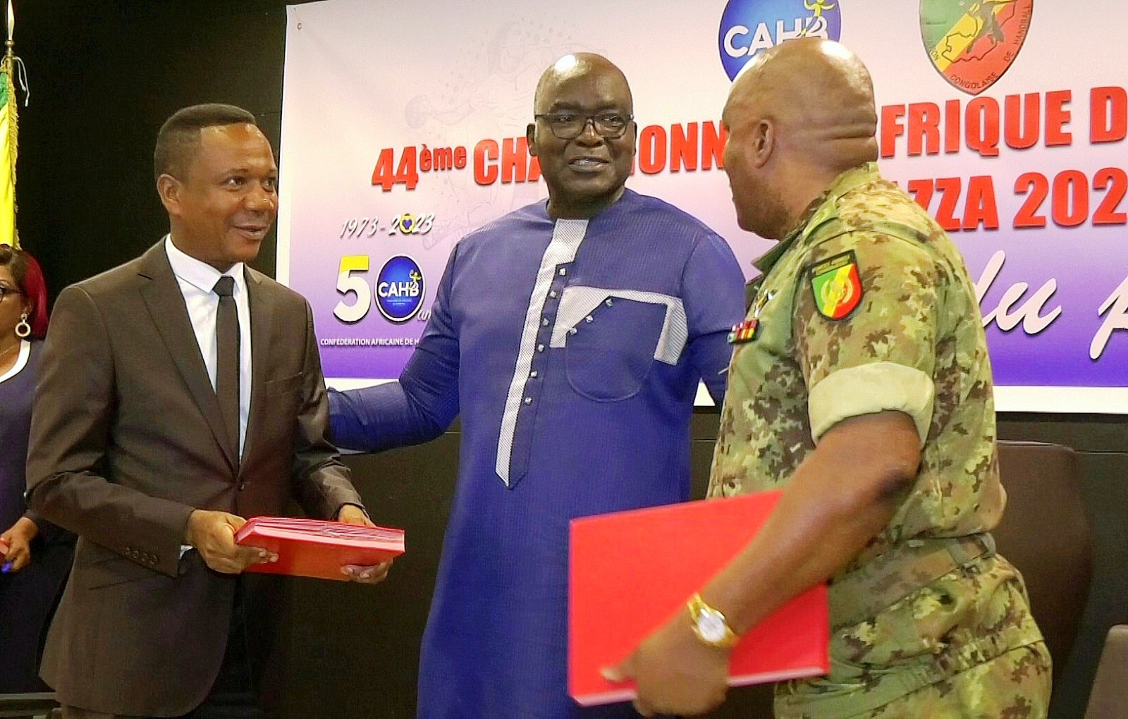 La Confédération africaine de handball (CAHB), représenté par son président Aremo Mansourou, Yann Ayessa, président de la fédération congolaise de handball (Fécohand) et le président de la direction général de la sécurité présidentielle (DGSP), Serges Oboa ont paraphé le 22 mars à Brazzaville le protocole d’accord qui acte l’organisation du 44e championnat d’Afrique des clubs champions de handball du 26 septembre au 7 octobre couplé au 50e anniversaire de la CAHB.