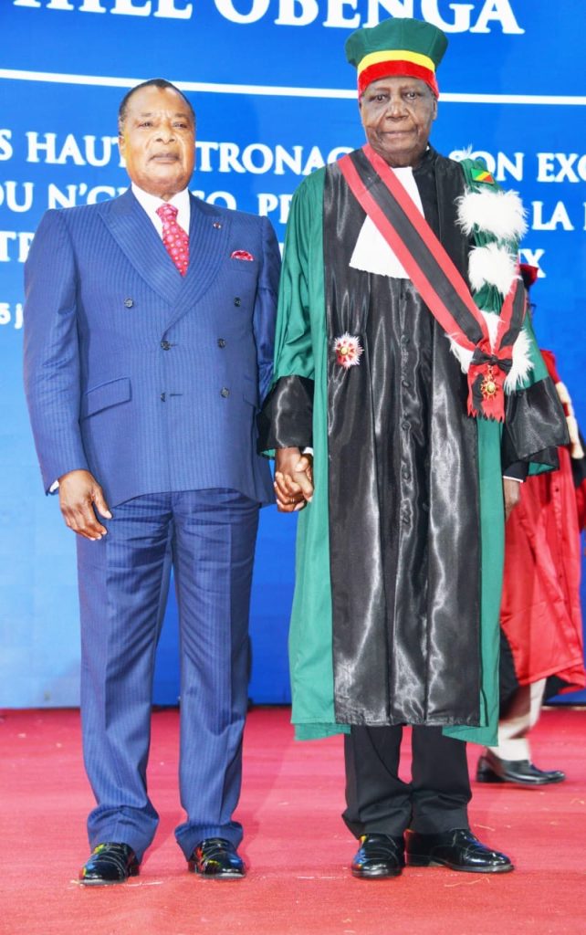 Le Pr Théophile Obenga est désormais élevé à la dignité de Grand-croix dans l’Ordre national du mérite congolais. Cet homme de Lettres et de Sciences a été honoré, le 25 juillet 2025, au palais des Congrès de Brazzaville, à titre anthume de la République pour les éminents services rendus à la Science et à la Nation. La cérémonie d’hommage exceptionnel et émouvant de décoration a été patronnée par le Président de la République, Denis Sassou- N’guesso. L’évènement s’est déroulé en présence des membres du gouvernement, de toute la crème du monde Universitaire et des invités de marque.