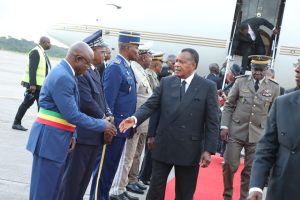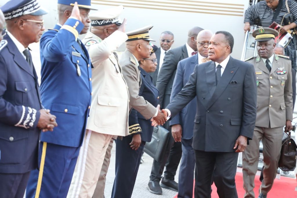 Après avoir pris part à la cérémonie d’hommage de la Nation au ministre d’État , ministre de la fonction publique, du travail et de la sécurité sociale, Firmin Ayessa , le Chef de l’État s’est envolé pour le département de la cuvette pour des raisons , respectivement familiales, administratives et de la suite d’hommage funéraire au ministre décédé. C’est aux environs de 17 heures que le Falcon, transportant le président de la République Denis Sassou N’Guesso, a atterri ce lundi 23 fevrier 2026, dans le département de la Cuvette. À sa descente d’avion à l’aéroport international d’Ollombo, il a été accueilli, comme de coutume, par les corps constitués des départements de l’Alima-Nkeni et de la Cuvette.